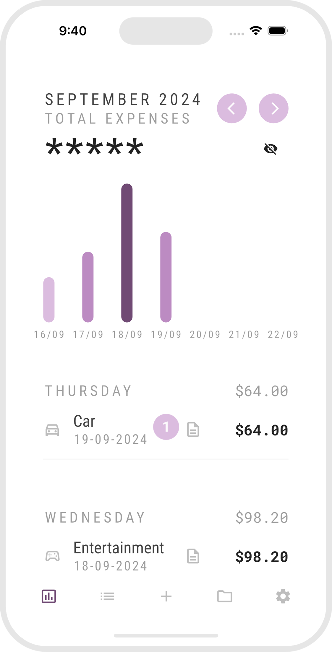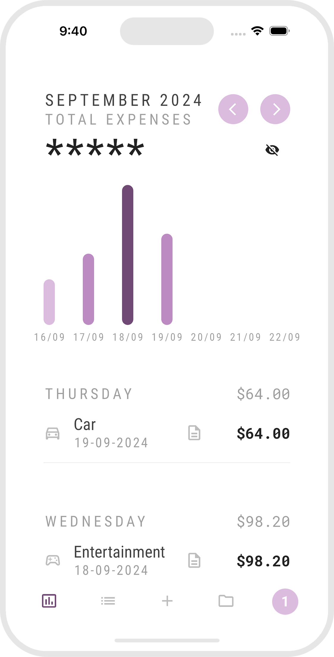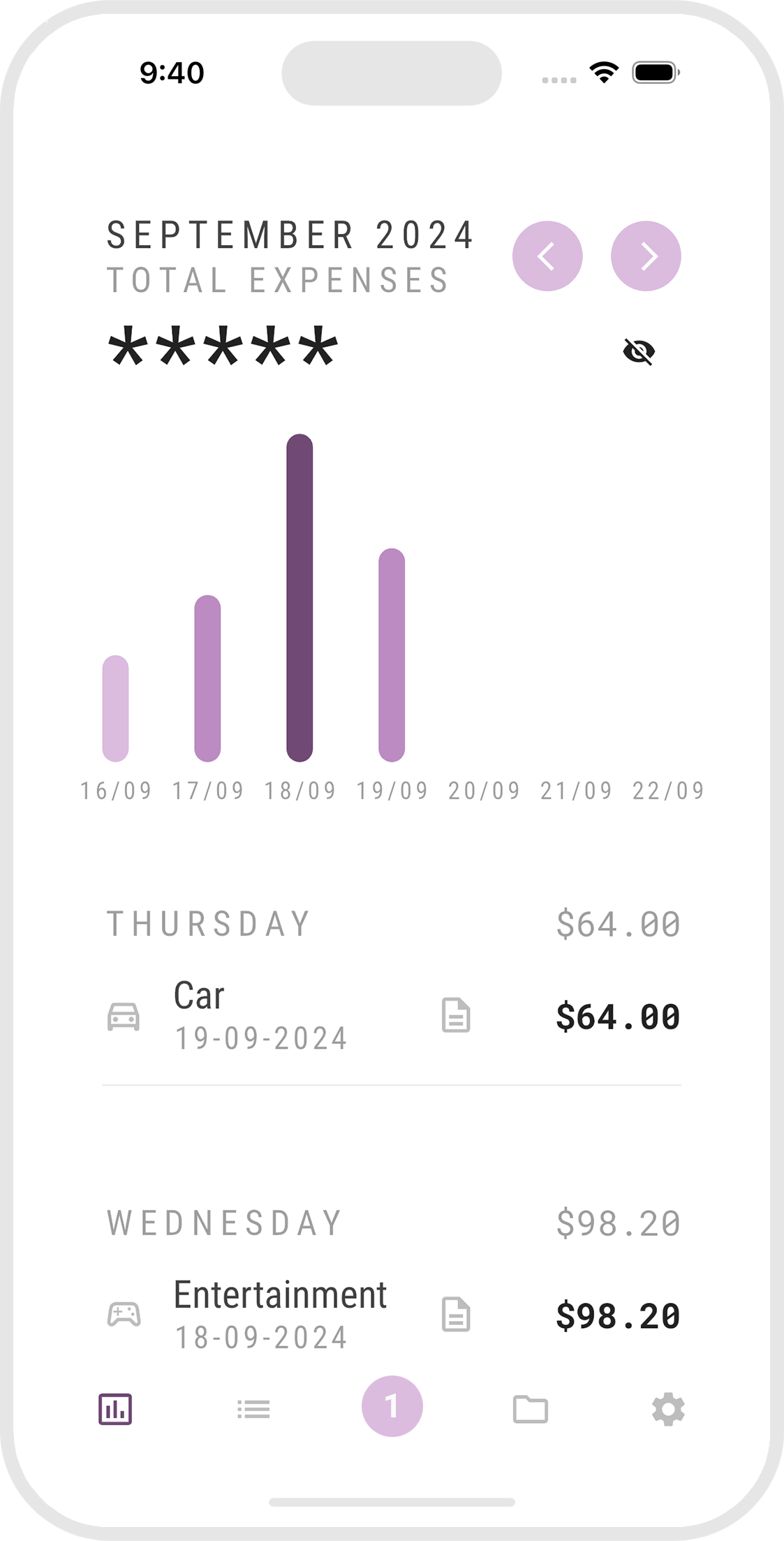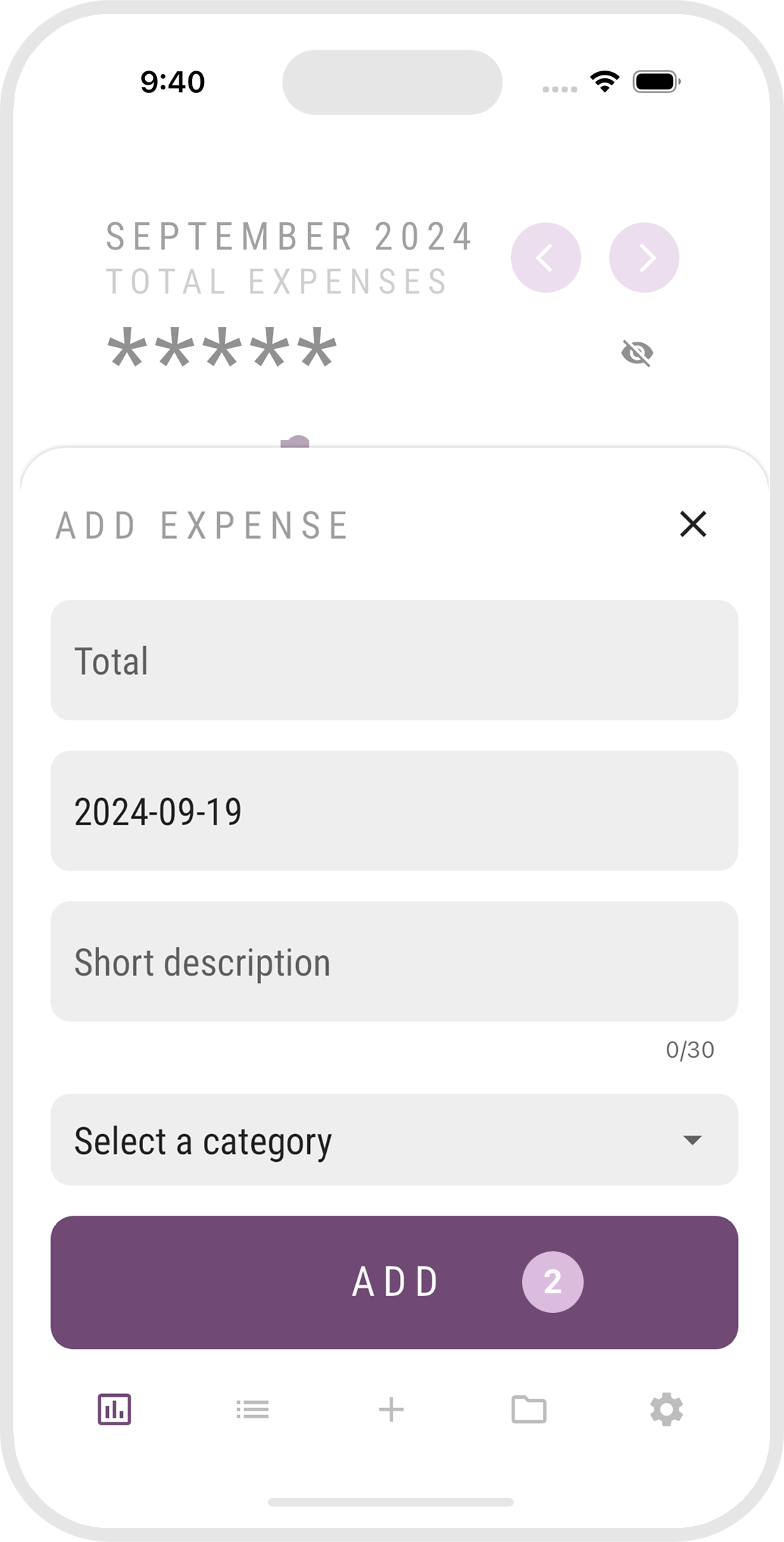 - By default, total expenses are hidden. In order to view the total expenses for this month, you can click on the visibility_off icon.