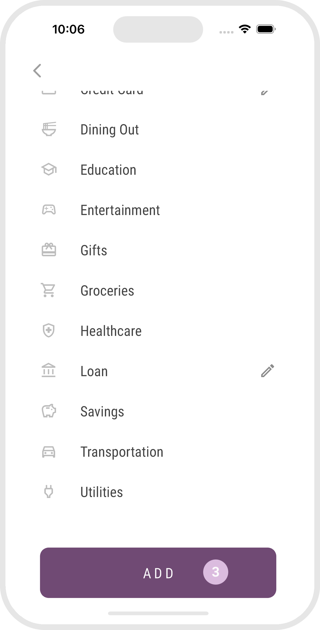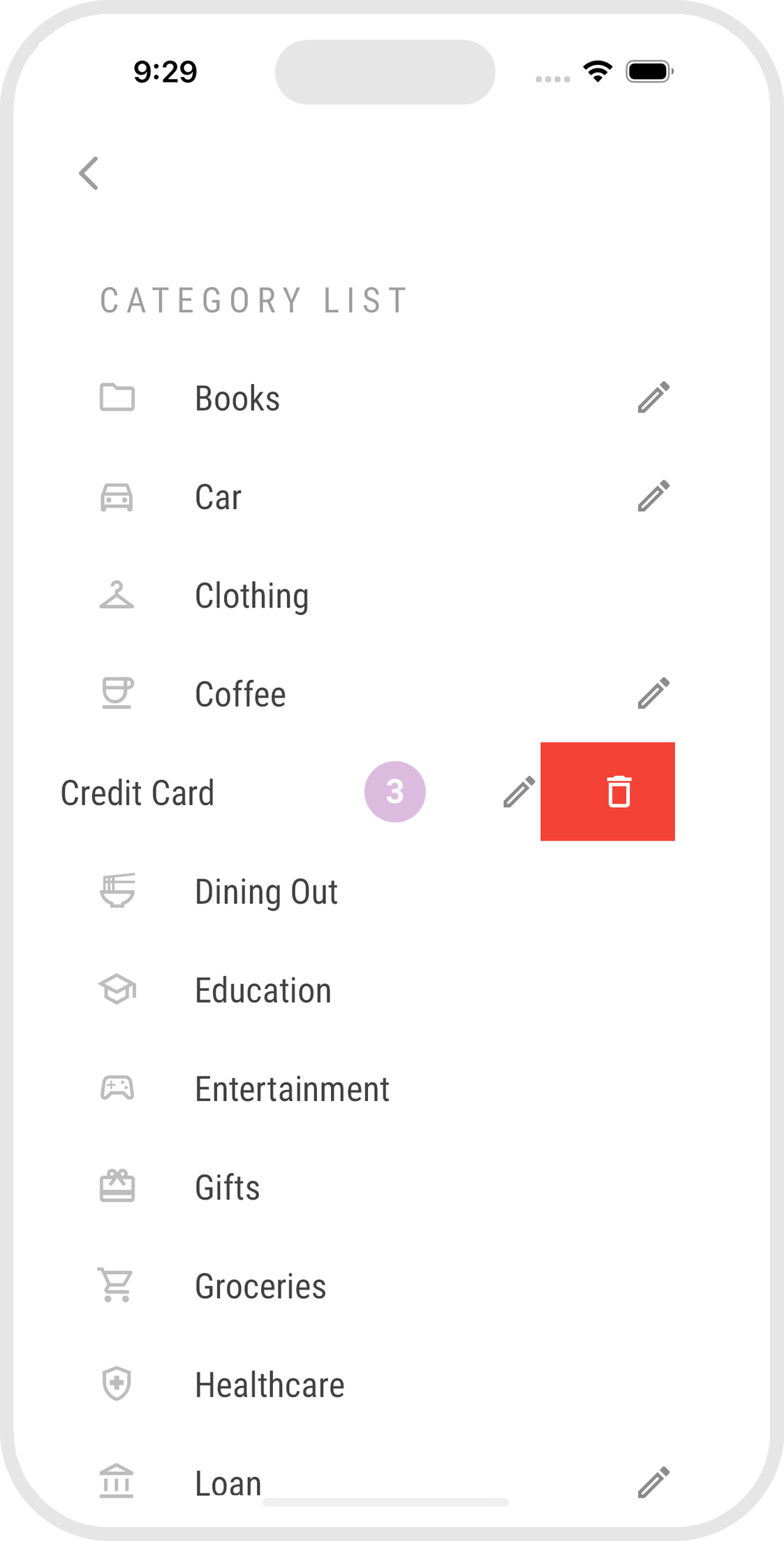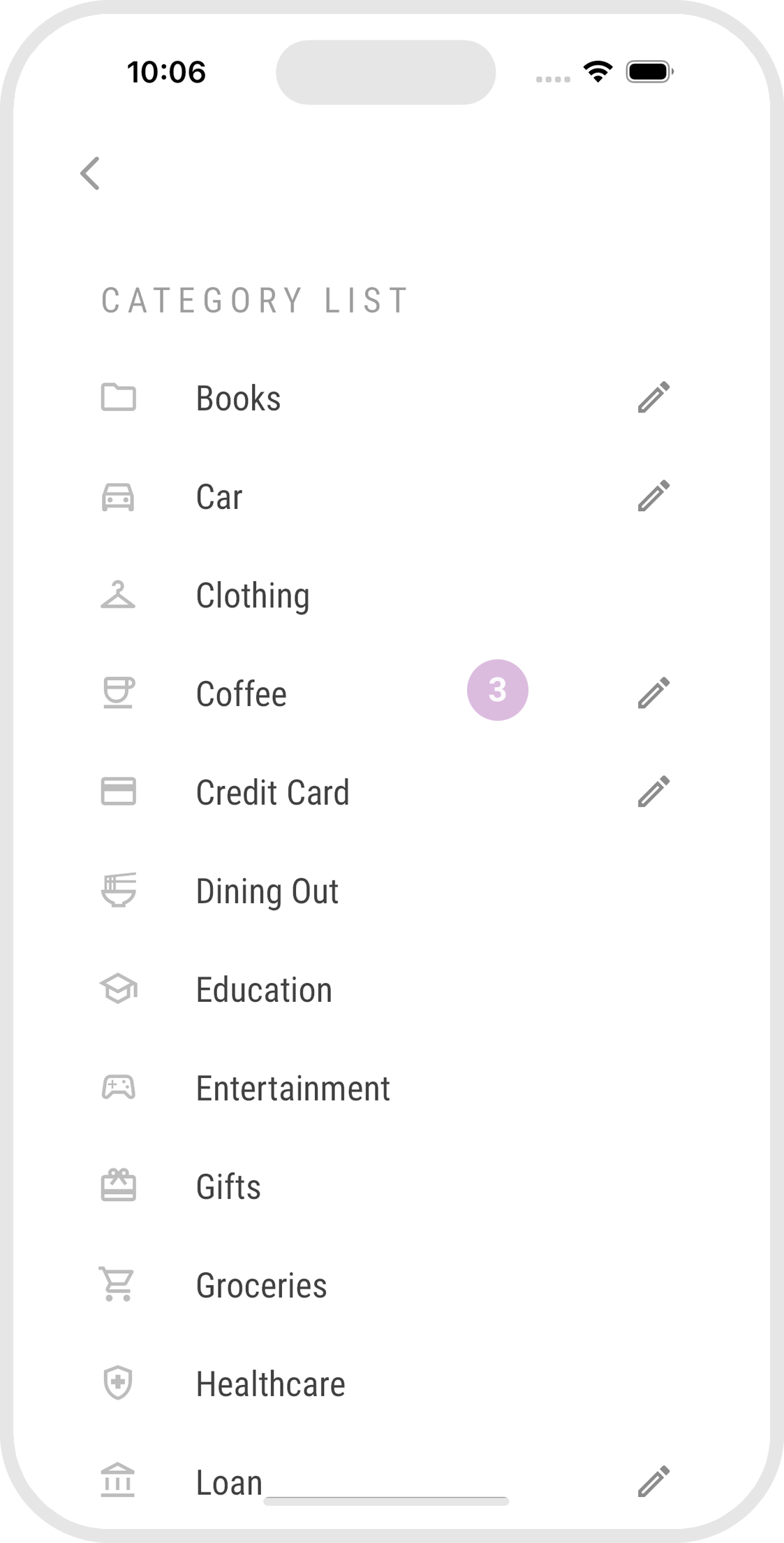 - Select the category that you want to edit. Categories that can be edited is represented with a edit icon.