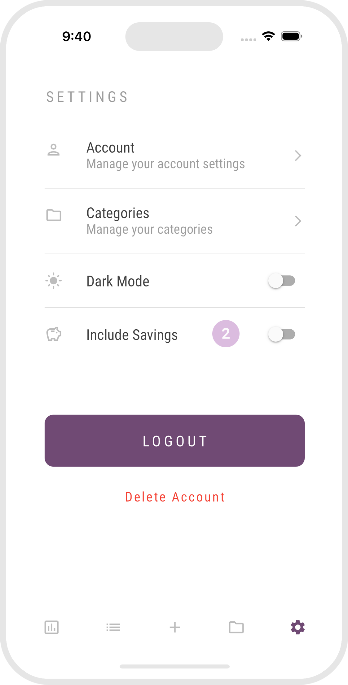 Savings is a default category. This feature allows the user to exclude/include the expenses that belongs to the savings category. By default, all expenses that are categorised as savings will not be displayed.